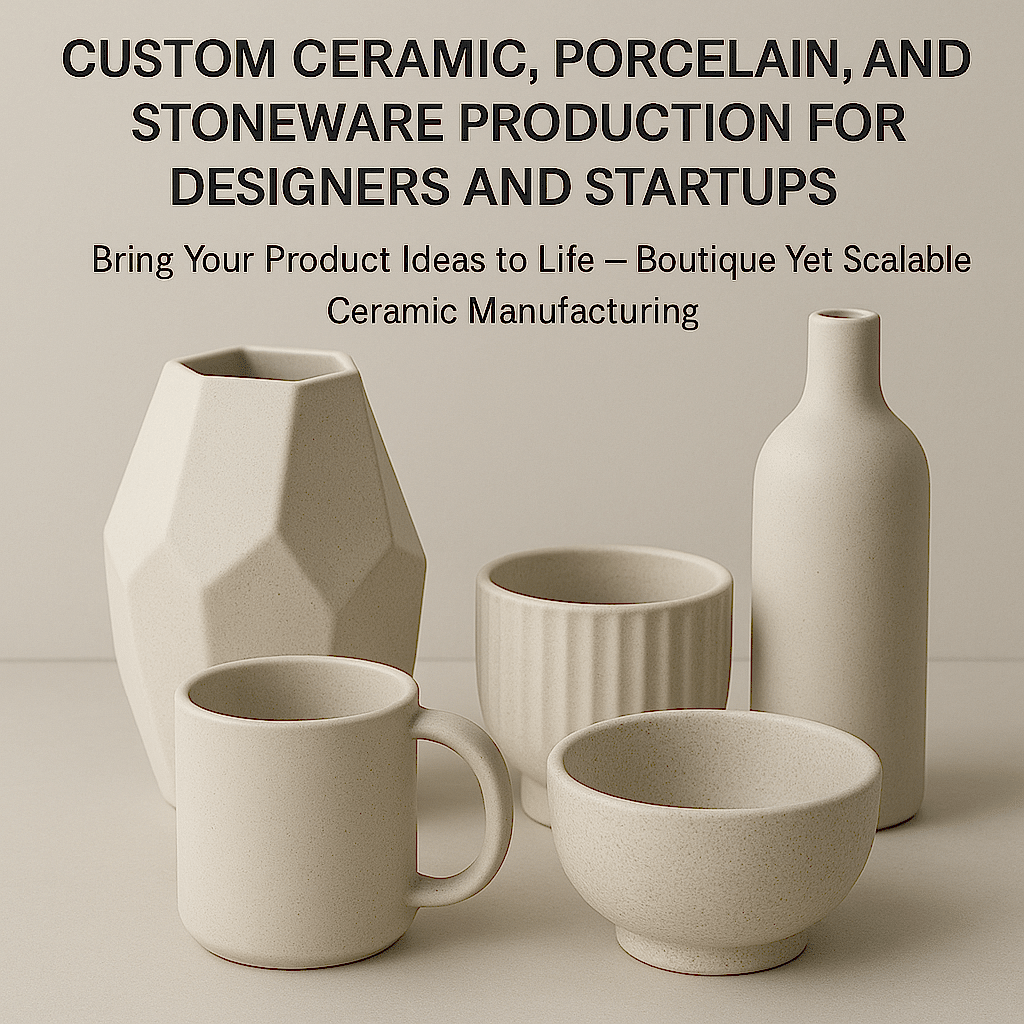 Custom Ceramic, Porcelain, and Stoneware Production for Designers and Startups Bring Your Product Ideas to Life – Boutique Yet Scalable Ceramic Manufacturing We offer custom ceramic manufacturing services for startups, designers, and brands aiming to bring their unique ideas to life. If it can be made from ceramic, porcelain, or stoneware—we can produce it for